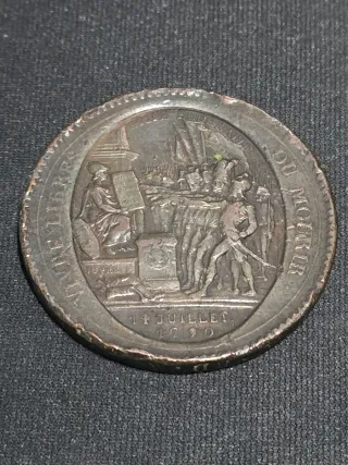 Medalla de confianza de cinco sous, conmemorativa del 14 de julio de 1790. - Diseño con escena histórica.