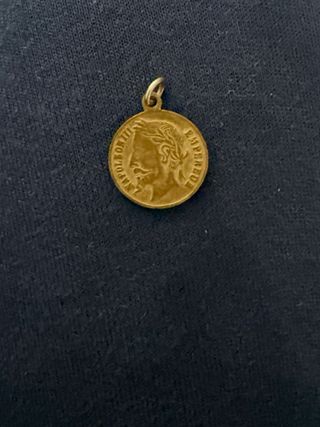 Preciosa medalla antigua con la efigie del Emperador Napoleón III. Es una pieza pequeña y delicada, ideal para coleccionistas o amantes de la historia. - Medalla de metal dorado.