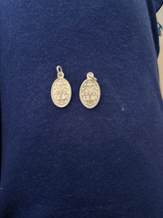 Dos medallas de la Virgen María, de metal plateado. Son pequeñas y ovaladas. Ideales para usar como colgantes. - Material: Metal plateado - Forma: Ovalada - Tamaño: Pequeño - Cantidad: 2