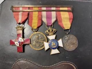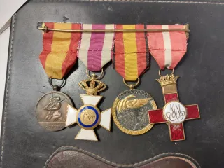 Conjunto de medallas militares de la Guerra Civil Española de un guardia civil, sus iniciales están grabadas en la medalla al mérito militar.