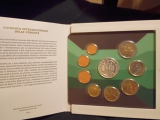 Cartera de San Marino del año 2019 que incluye las 8 monedas de este año, de 1 céntimo a 2 euros, más medalla conmemorativa de 5 € dedicada a la jornada mundial del bosque En cartera oficial, perfecto estado.