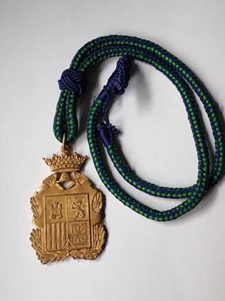 Medalla conmemorativa de la Patrona de Málaga. - Material probablemente plata con esmaltes, bandera de España u de la Fakange Española de las JONS. - Fecha superior: 18-7-36 - Fecha inferior: 8-2-37 - Inscripción: Ntra. Sra. de la Victoria Patrona de Málaga - Diseño central de la Virgen. Con defectos, pérdida del color rojo de los esmaltes y sin el enganche superior. Esta pieza muestra la importancia de la fe del cristianismo y su iglesia en el bando nacional liderado por el general Francisco Franco Bahamonde.