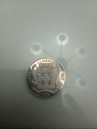 Medalla conmemorativa de Almería. - Diseño con escudo central. - Inscripción ALMERIA COSTA DEL SOL y DIA POR LA LIBERTAD 1812. - Borde decorado con motivos vegetales.