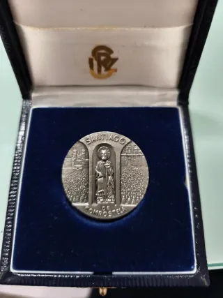 Medalla conmemorativa del Año Santo Jubilar de 1993, dedicada a Santiago de Compostela. - Diseño circular con relieve. - Representación de Santiago Apóstol. - Inscripción SANTIAGO DE COMPOSTELA.