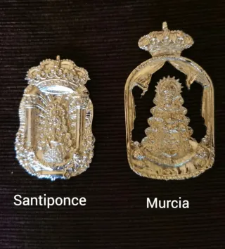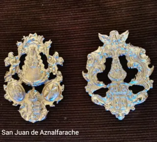 Colección de 8 medallas del Rocío, con detalles ornamentales. No son para colgar. Miden 8 cmts y son plateadas - Diseño elaborado. - Acabado metálico.