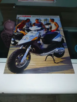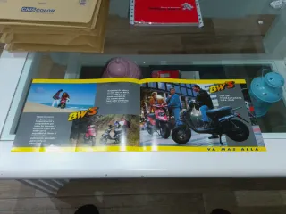 Catálogo publicitario de Yamaha BWS. - Diseño con jóvenes y vehículo. - Incluye texto VA MAS ALLA. - Logotipo de Yamaha.