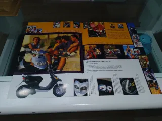 Lámina publicitaria original de la Yamaha Jog R. - Muestra diferentes vistas de la moto. - Incluye el logo de Yamaha y Jog.
