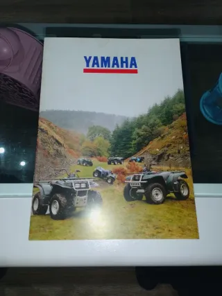 Catálogo original de vehículos ATV de Yamaha. Contiene imágenes de diferentes modelos en un entorno natural. - Portada con logo de Yamaha. - Ilustraciones de quads en acción. - Paisajes de montaña y bosques.