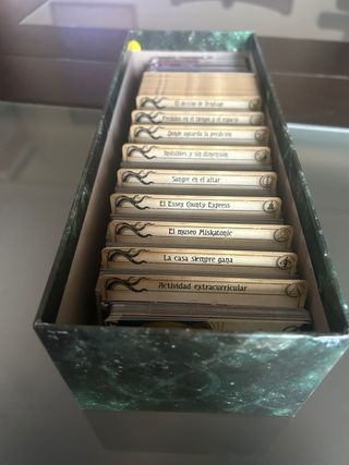 Expansión para Arkham Horror: El Juego de Cartas. Se incluye: - Expansion de Campaña El Legado de Dunwich - Expansion de investigadores de El legado de Dunwich - Expansion Regreso a El Legado de Dunwich. Todo guardado en la caja regreso que presenta marcas de desgaste en las esquinas. Cartas de campaña enfundadas.