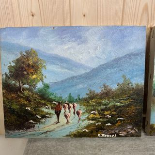 Conjunto de dos lienzos pintados al óleo, datan de los años 80. - Paisajes rurales. - Firmados por C. Torres.