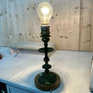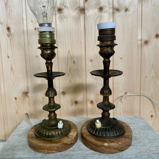 Par de lámparas de mesa con un diseño clásico de los años 70. - Base de mármol veteado. - Cuerpo metálico con detalles ornamentales. - Interruptor en la base. 10€ cada una