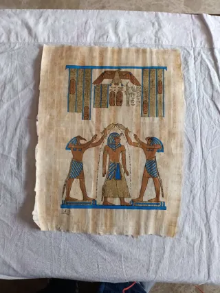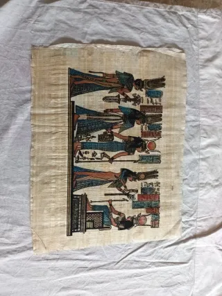 Auténticos papiros egipcios con escenas detalladas. Ideal para enmarcar. - Representación de figuras y jeroglíficos. - Colores vibrantes y diseño tradicional.