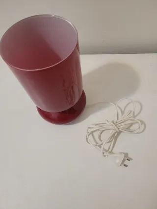 Lámpara de mesa de estilo vintage con un acabado en color rojo. - Diseño cilíndrico. - Base redonda. - Cable de alimentación blanco.