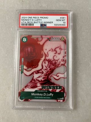 Carta promocional de One Piece de 2024, Monkey D. Luffy Uta Deck Battle-Winner. - Grado PSA 10 Gem Mint. - Carta #061.