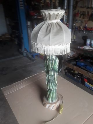 Lampara monge creo que es de alabastro pesa 5kg se le puede quitar la lámpara no enciende es del portalamparas creo que necesita uno nuevo