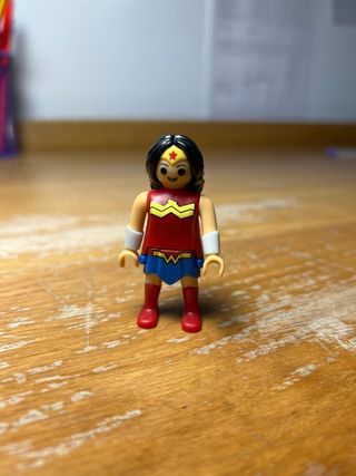 Figurita de Wonder Woman de Playmobil. - Diseño inspirado en el personaje. - Colores rojo, azul y dorado.