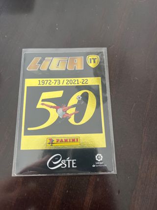 Tarjeta coleccionable de Panini conmemorativa del 50 aniversario de la Liga. - Edición especial 1972-73 / 2021-22. - Diseño conmemorativo del 50 aniversario. - Incluye logo de LaLiga Santander.