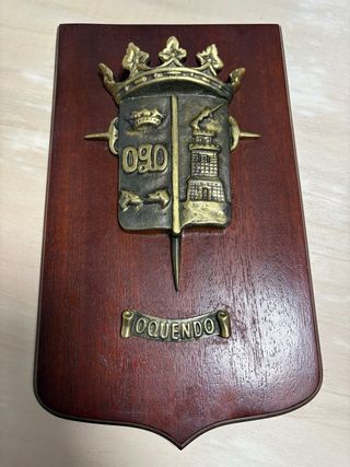 🔸Metopa antigua con el escudo del Regimiento de Artillería de campaña nº15. - Escudo de águila bicéfala con corona y cañones cruzados. - Inscripción Regimiento-15 en cinta dorada. - Base de madera oscura 1240 gr 27 × 23,5 cm Ideal para coleccionistas de artículos militares. 💬 Disponible junto con otras metopas y artículos de militaria que tengo en venta.