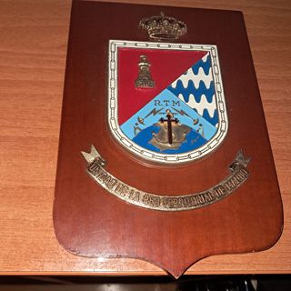 Metopa decorativa con el escudo de España con un ancla. - Base de madera oscura. - Escudo y adornos en metal dorado. - Diseño detallado de la heráldica española. Dimensiones: 55 x 32 cm Peso: 6 kg Si lo viene a recoger, el precio se reduce a la mitad (zona Plaza de Castilla en Madrid)