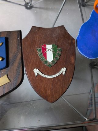Metopa militar del Regimiento de Transmisiones tácticas. Es una pieza única y decorativa. - Metopa de madera con escudo. - Diseño con detalles metálicos. - Ideal para coleccionistas militares.