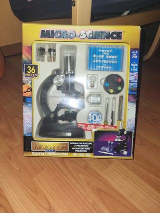 microscopio micro-science antiguo, en su caja original.