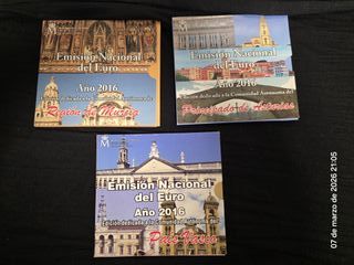 Conjunto de tres ediciones especiales de la Emisión Nacional del Euro del año 2016. - Edición dedicada a la Región de Murcia. - Edición dedicada al Principado de Asturias. - Edición dedicada al País Vasco.