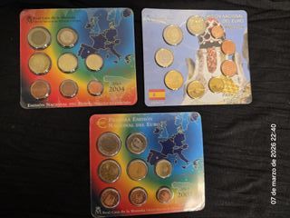 Conjunto de tres emisiones nacionales de monedas de Euro de España. - Emisión Nacional del Euro Año 2004. - Emisión Nacional del Euro Año 2014 (Park Güell y Gaudí). - Primera Emisión Nacional del Euro Año 2002.
