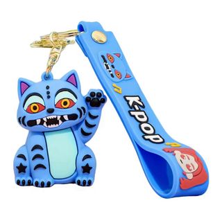 Conjunto de cuatro llaveros con diseños inspirados en el K-pop. - Incluye un llavero de gato azul. - Tres llaveros de figuras de chicas. - Cada llavero tiene una correa con el texto K-pop. HAGO ENVIO. Precio NO NEGOCIABLE. No se reservan a nadie