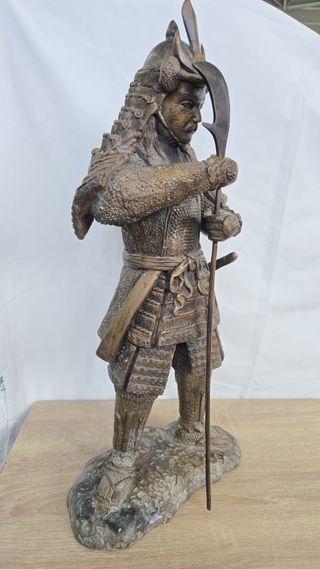 Figura - estatua de bronce de un GUERRERO SAMURAI con naginata. En perfecto estado de conservacion. - Material: Bronce. - Arma: Naginata. - Base: Suelo rocoso. - Vendido en subastas internacionales entre 800$ - 1200$ - Altura: 46cm - Patina en perfecto estado. - Inspirada en el periodo SENGOKU. Se puede ver y comprobar en Moreda (Asturias) o envios mediante Wallapop. Precio no negociable. Envio en maximo 2-3 dias. Tlf 622695177. Precio 750€