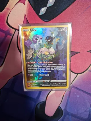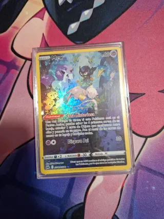 Carta Pokémon de Mew, perteneciente a la expansión Cenit Supremo. - Habilidad: Cola Misteriosa. - Ataque: Disparo Psi. - Coste de retirada: 30.