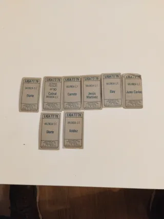 Lote de cromos de la temporada 77/78 del Valencia C.F. - Incluye jugadores como Diarte, Cabral, Carrete, Jesús Martínez, Eloy, Juan Carlos y Valdez. - Un cromo especial de Últimos Fichajes con el número 10.