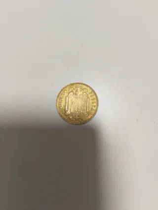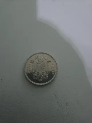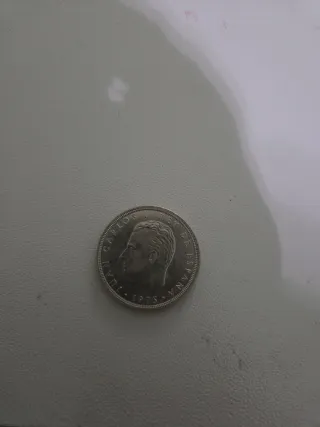 Moneda de 1 peseta con un detalle en su acuñación. - Diseño con escudo. - Borde con inscripciones. La moneda es más fina y menos pesada