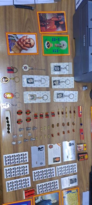 Pin,llaveros, sujeta corbatas ,mecheros, gemelos de falange y francisco franco ,todo a estrenar, lote completo .Dispongo también de más artículos relacionados