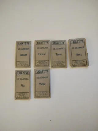 Lote de cromos de la colección de la temporada 77/78 del equipo UD Salamanca. Incluye jugadores como Seoane, Enrique, Tomé, Pérez, Pita y Víctor. - Cromos de la temporada 1977/1978. - Pertenecientes al equipo UD Salamanca. - Jugadores incluidos: Seoane, Enrique, Tomé, Pérez, Pita, Víctor.