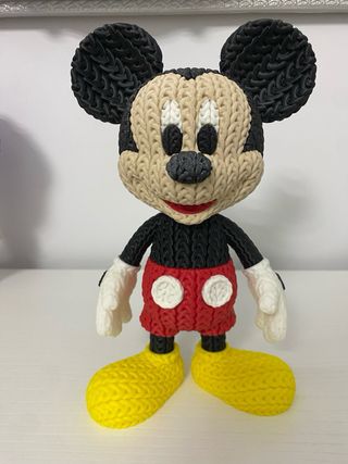 Figura decorativa de Mickey Mouse con un encantador estilo tejido a crochet. - Altura aproximada de 23 cm. - Diseño detallado que imita el tejido a mano. - Gran calidad y montado a mano cuidando cada detalle.