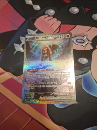 Carta Pokémon de Ting-Lu ex. - Habilidad: Tierra Maldita. - Ataque: Palada de Tierra (150). - Número de carta: 263/193.
