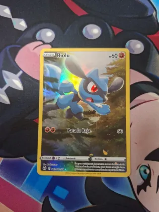 Carta Pokémon de Riolu, edición Básico. - Ataque: Patada Baja. - Coste de retirada: 1. - Debilidad: x2. - Resistencia: -30.