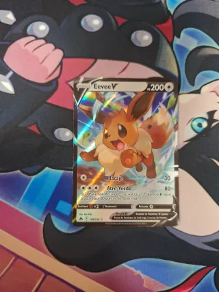 Carta Pokémon de Eevee V, parte de la expansión Cenit Supremo. - Número de carta: 108/159. - Ataque Placaje con 30 de daño. - Ataque Atre-Veedo con 80+ de daño. - Debilidad x2. - Resistencia.