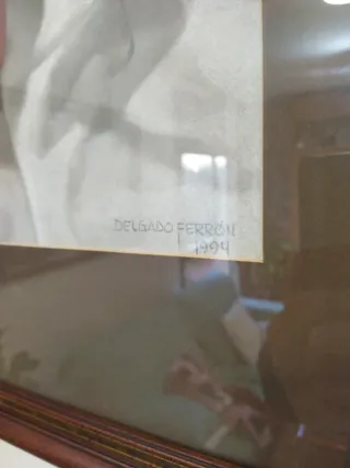 Cuadro de bodegón con frutas y uvas, pintado por Delgado Ferrón en 1994. - Marco de madera oscura. - Firmado por el artista.