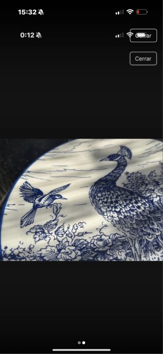 Precioso plato de cerámica con un delicado diseño de aves en azul. - Motivo de pájaros y flores. - Estilo clásico y elegante.