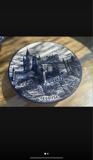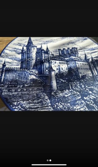 Precioso plato de cerámica con un diseño detallado de un castillo. - Motivo de castillo en estilo azul y blanco. - Borde decorativo.