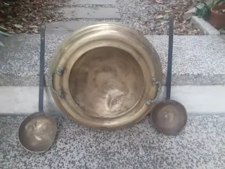Brasero antiguo de latón con cucharones