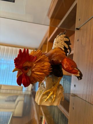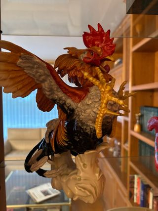 Elegante pareja de gallos de porcelana de la marca Algora. Pieza decorativa con gran detalle. - Diseño realista y colorido. - Base de porcelana blanca.