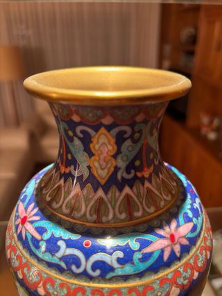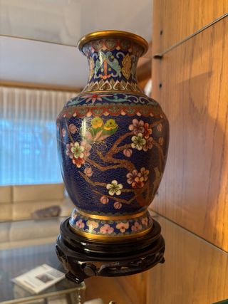 Jarrón Chino Cloisonné Flores y Pájaros