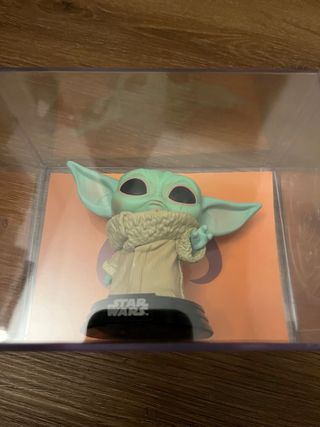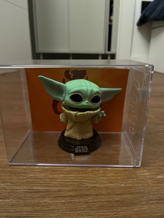 Figura coleccionable de The Child (Baby Yoda) de Star Wars. - Diseño estilizado característico de Funko Pop. - Base negra con el logo Star Wars.