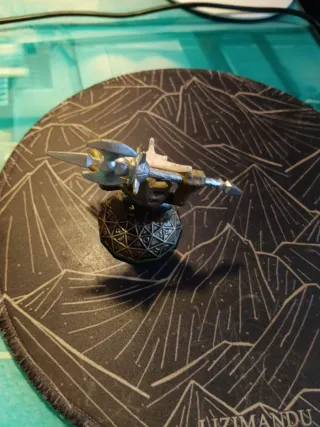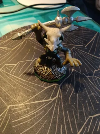Figura de colección de Skylander. - Personaje con diseño único. - Base decorada con motivos. - Incluye arma. - Colores vivos.
