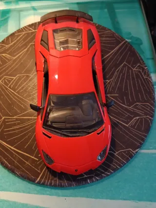 Réplica detallada de un coche deportivo en color rojo. - Diseño deportivo aerodinámico. - Ruedas negras. - Alerón trasero.