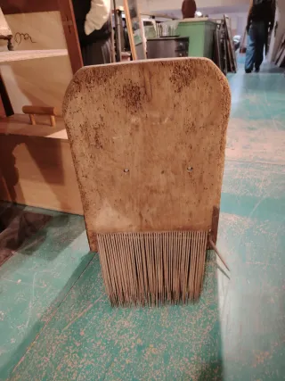 Herramienta antigua para el cardado de lana. - Fabricado en madera. - Dientes metálicos.