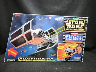 Controlador de vuelo Imperial de Star Wars, modelo Flight Controller de Micro Machines. - Incluye el Tie Fighter de Darth Vader. - Permite entrar en la dimensión de la luz y el sonido. - Cañones láser que lanzan misiles. - 3 efectos de sonidos reales. - 3 frases galácticas.