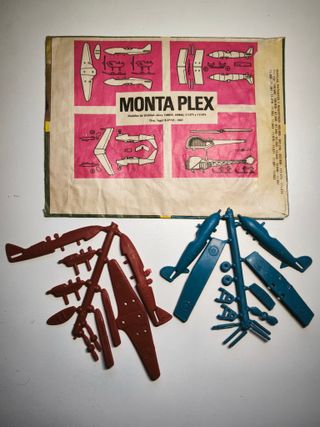 Lote de piezas de Monta-Man para despiece. Ideal para completar tu colección o para reparaciones. - Helicóptero verde - Motocicletas grises - Cañón marrón - Figuras de acción (rojas, azules y verdes) - Accesorios variados (maletín, radio, cofre, armas, etc.)